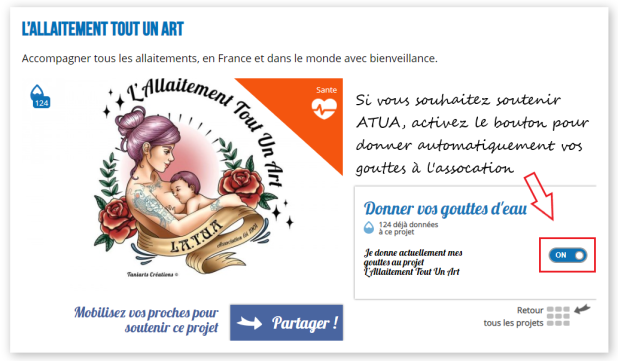 A chaque recherche que vous faites, vous cumulez des gouttes. Ces gouttes, vous pouvez les reverser au projet de votre choix.